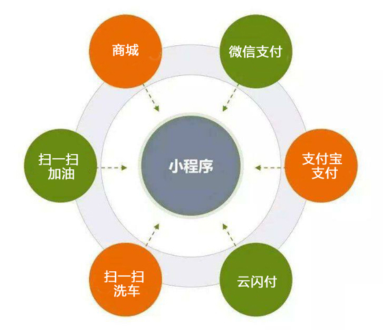 掃一掃洗車、掃一掃加油、即時溝通、商城購物等
